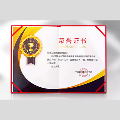 獎(jiǎng) 項(xiàng):恒潔入選“電子坐便器行業(yè)五強(qiáng)品牌”