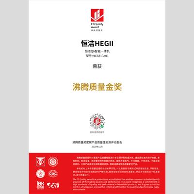 獎(jiǎng) 項(xiàng):沸騰質(zhì)量金獎(jiǎng)-恒潔Q6智能一體機(jī)