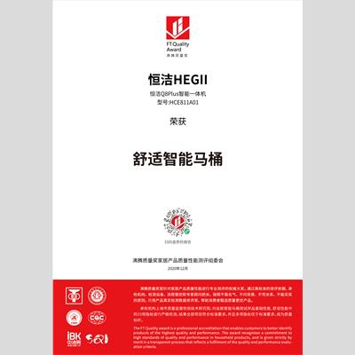 獎(jiǎng) 項(xiàng):舒適智能馬桶-恒潔Q8Plus智能一體機(jī)