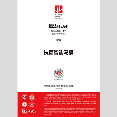 獎(jiǎng) 項(xiàng):抗菌智能馬桶-恒潔Q9智能一體機(jī)