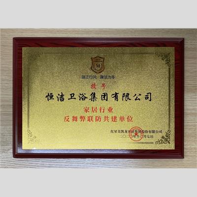 獎 項:家居行業(yè)反舞弊聯(lián)防共建單位-恒潔
