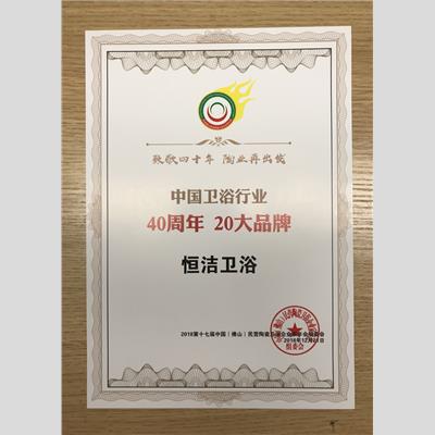 獎 項:中國衛浴行業四十年 20大品牌