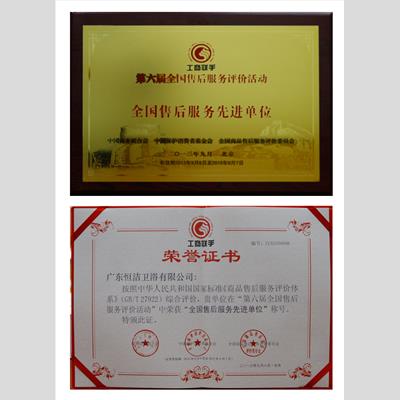獎 項:第六屆全國售后服務評價活動-全國售后服務先進單位