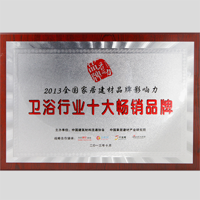 獎 項:2013年全國家居建材品牌影響力-衛浴行業十大暢銷品牌