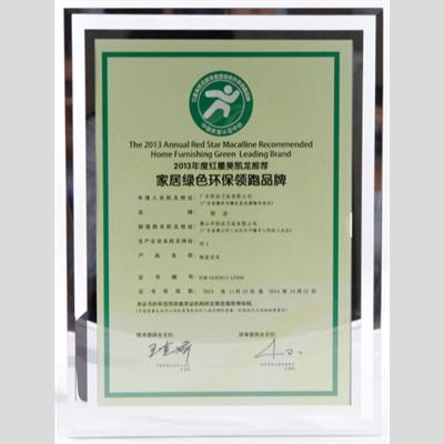 獎 項:2013年度紅星美凱龍推薦 家居綠色環保領跑品牌