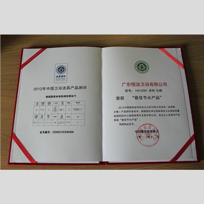 獎 項:2012年中國家居行業口碑排行榜-中國好衛浴