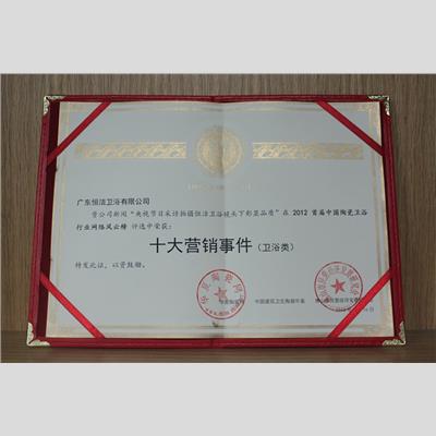 獎 項:中國陶瓷衛浴行業“十大營銷事件”(上央視《每周質量報告》)