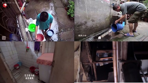 這間有著百年歷史的典型“穿斗式”川西老宅,由于年久失修早已不見“青磚石木”的清雅原貌。不僅屋頂漏雨、房間潮濕、在生活上也極其不便,由于沒有現代的供水系統,所有的用水都要靠人力端進去。房屋最原始的木結構房子,已經酥爛,幾乎無法支撐自己本身的重量。整個宅子里沒有排污設施,要上廁所只能去附近的商場,走一個來回要20分鐘,王奶奶只能依靠一個痰盂解決個人問題。