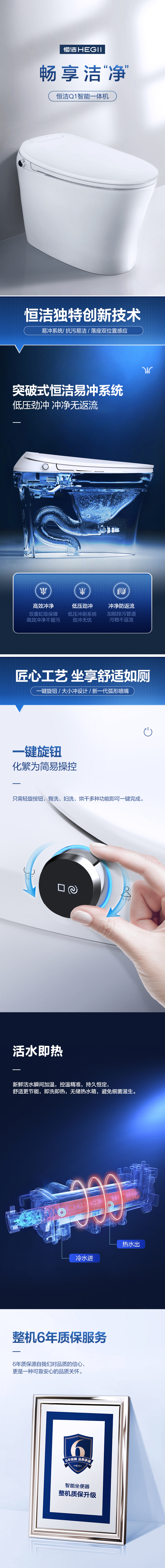 - 恒潔易沖系統:低壓勁沖,沖凈防返流