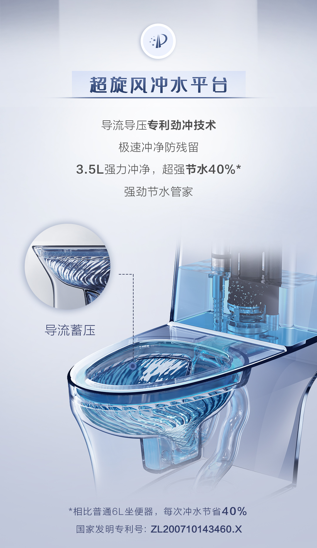 - 超旋風沖水平臺:3.5L強力沖凈,超強節水40%