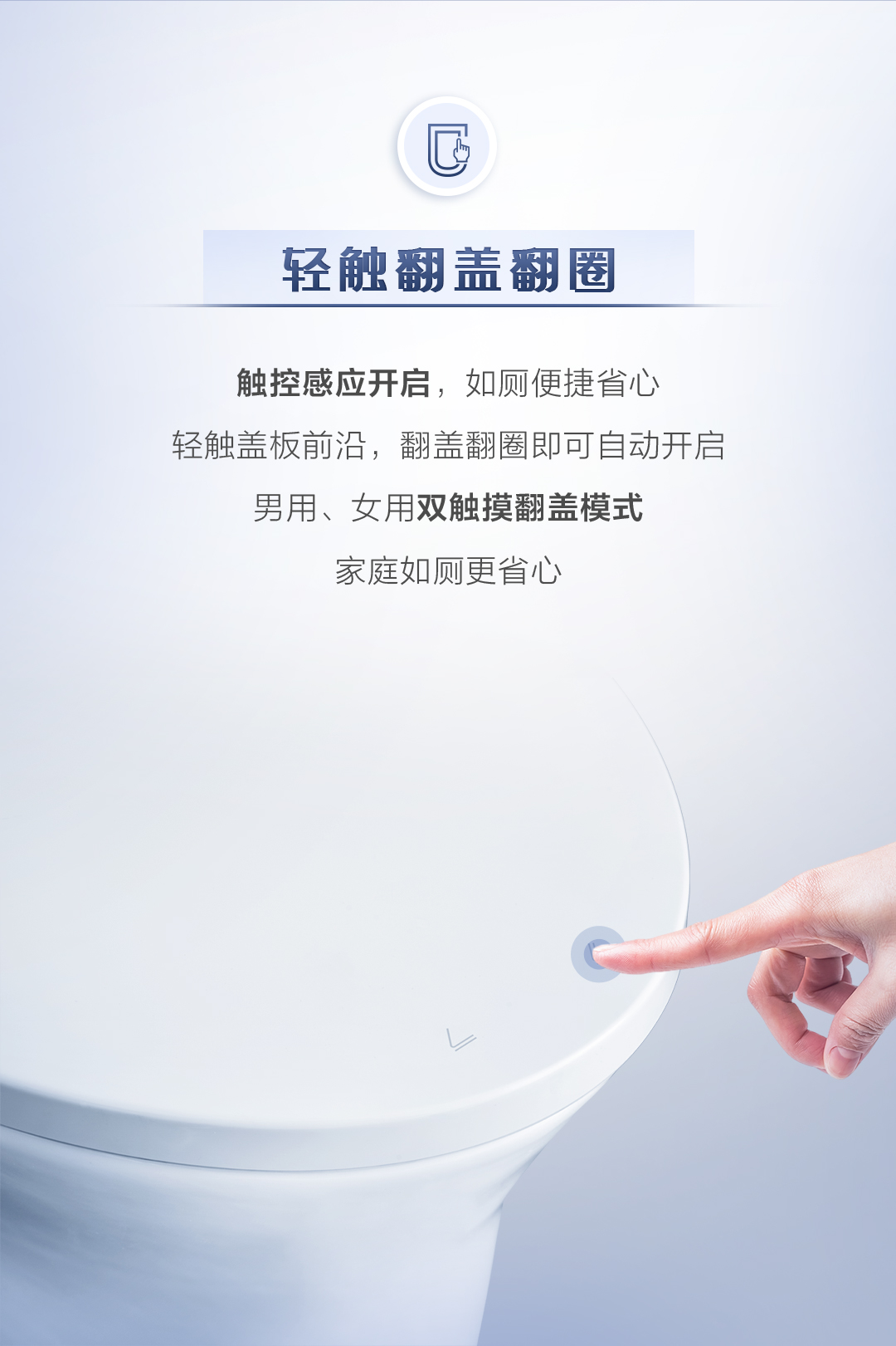 - 輕觸翻蓋翻圈:觸控感應開啟,如廁便捷省心