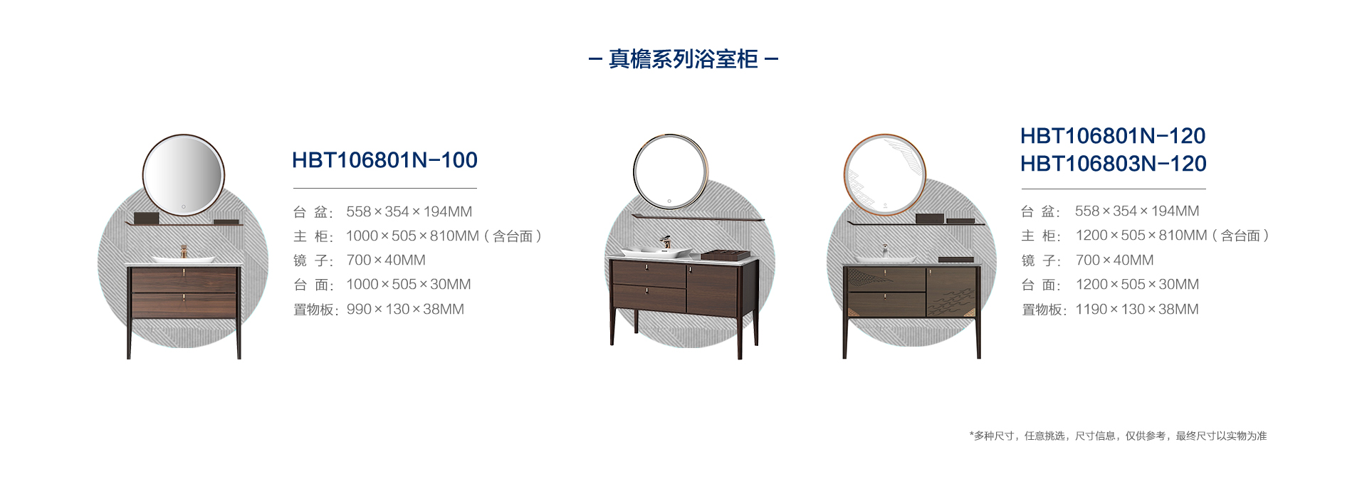 HBT106801N-120 (經典胡桃木色)實木浴室柜