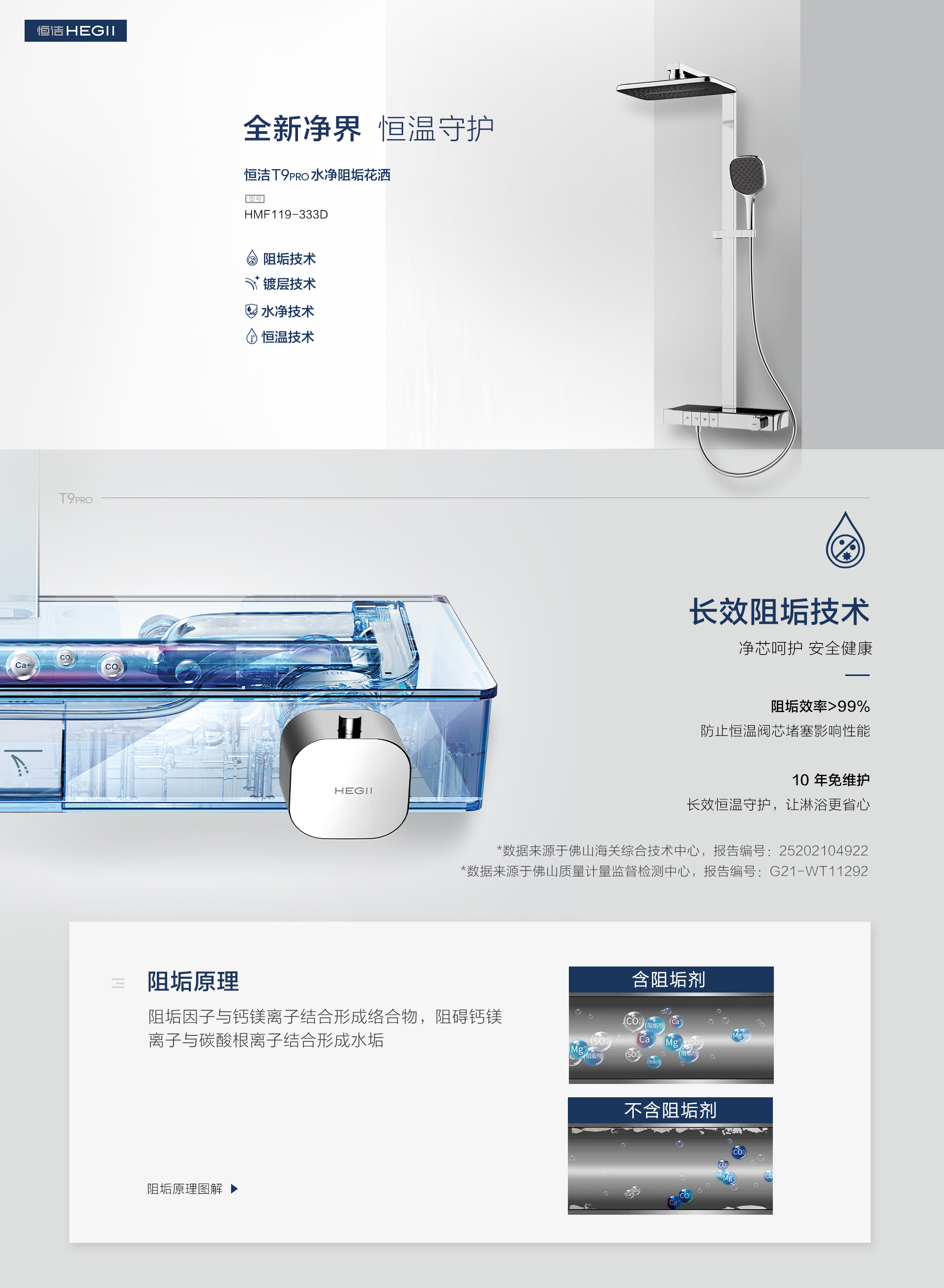 長效阻垢技術,阻垢率>99%,10年恒溫守護