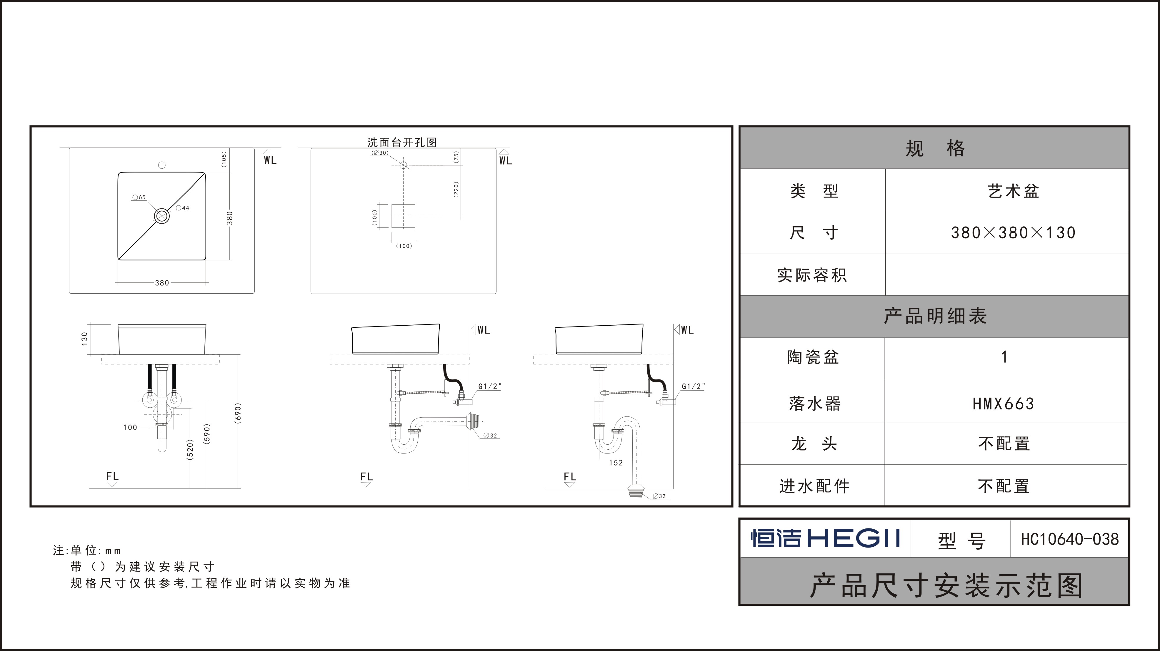 尺寸:380x380x135mm