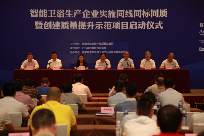 5月26日,由國家質檢總局產品質量監督司主辦,廣東省質量技術監督局承辦,國家陶瓷及水暖衛浴產品質量監督檢驗中心協辦的智能衛浴生產企業實施「同線同標同質」暨創建質量提升示范項目啟動儀式在佛山舉行。