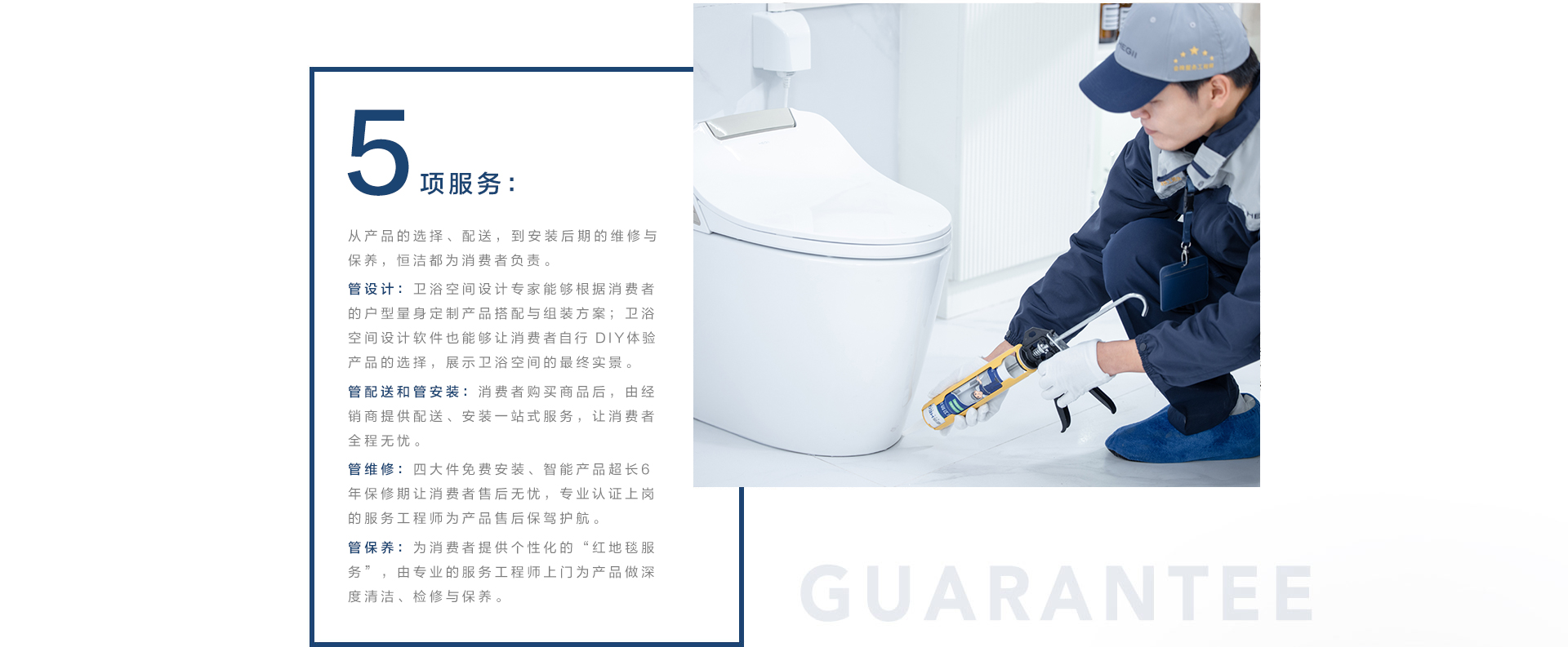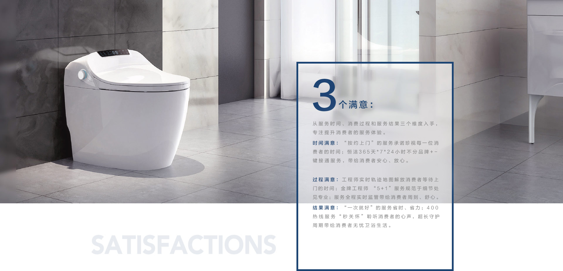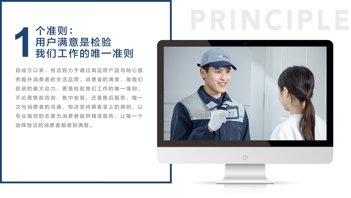 恒潔,自1998年創立以來,堅持讓衛浴回歸本質,用時間打造品質產品,用心創造美好體驗。產品服務于人,服務溝通于人。因此,恒潔秉持“用戶至上”的理念,遵照1個準則、3個滿意、5項服務和0距離的服務體系,為用戶提供高品質產品和全程無憂的服務:全媒體增值互動中心365天x7x24小時全天候在線,一鍵接入直達用戶需求;遍布全國的3000多個網點讓便捷服務就在用戶身邊;超長服務周期以及免費檢修與保養等增值服務讓用戶感受恒潔可靠安心的服務體系。